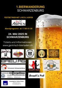 Am 24. Mai 2025 wird die erste Bierwanderung in Schwarzenburg stattfinden – ein einzigartiges Event, das Naturgenuss und Bierkultur auf außergewöhnliche Weise vereint. Erleben Sie eine entspannte Wanderung durch das malerische Gebiet rund um Schwarzenburg, bei der Sie nicht nur atemberaubende Landschaften genießen können, sondern auch die Gelegenheit haben, außergewöhnliche Biere lokaler Brauereien zu verkosten.